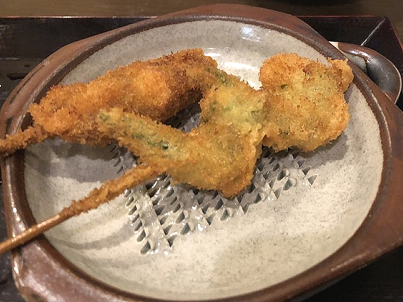 串あげ処「しの」では、お客様の食事のペースに合わせ、常にあつあつの串揚げ物を出すことを心がけております。
